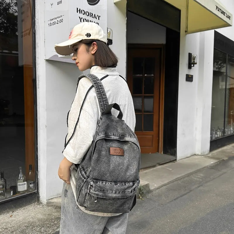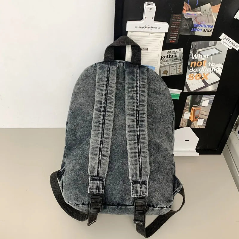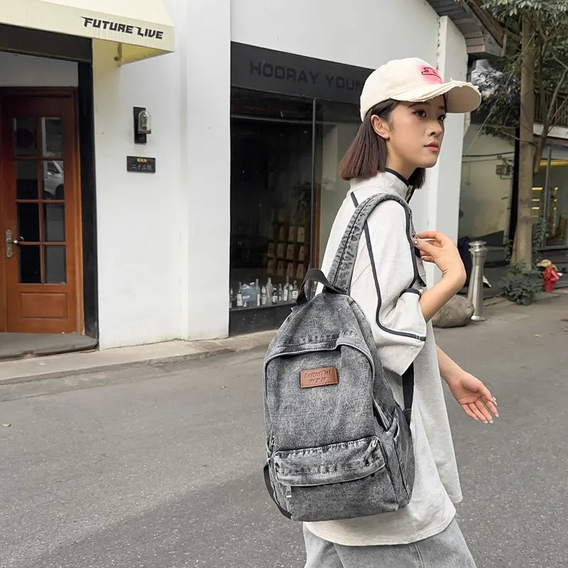 Mochila De tela vaquera para estudiante, morral De gran capacidad con múltiples bolsillos, a la moda, para la escuela,